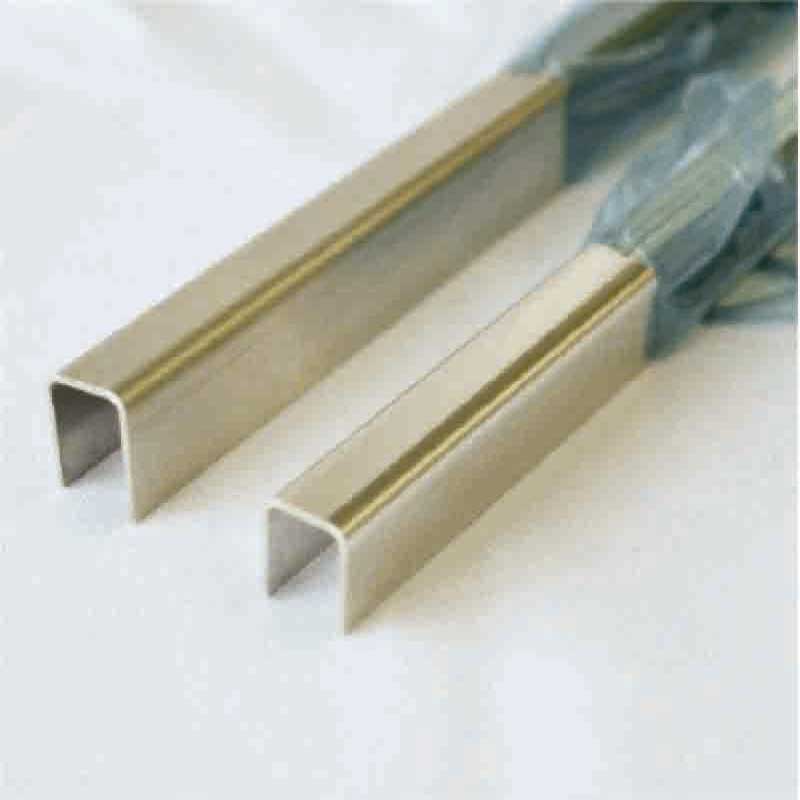 Perfil U em aço inox 304 p/ vidros de 10mm (barra com 3 metros)